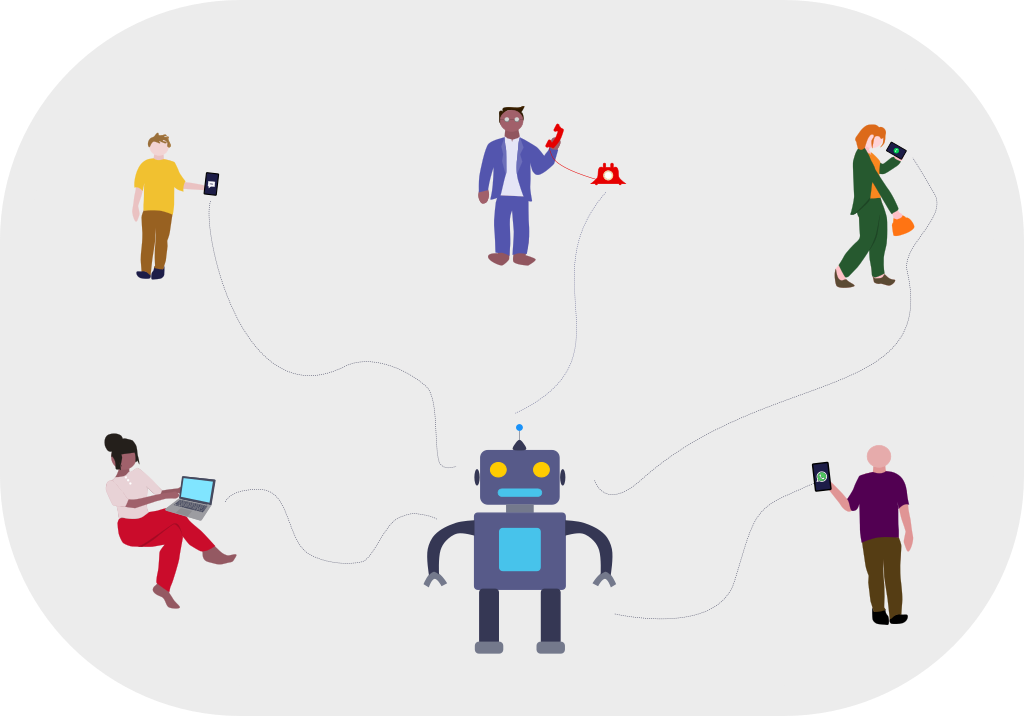 Sometimes your clients need to provide information that is hard to understand by natural language processors, such as a model number, license plates or an email address; our technology allows the bot to have a real time hybrid conversation with each client, and as the client is on the phone, information can be passed to the bot via SMS, email or web chat.